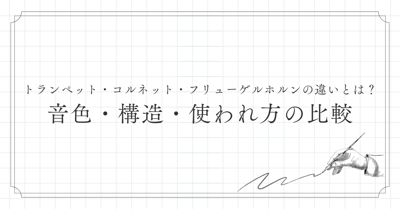 この記事では、トランペット・コルネット・フリューゲルホルンの3つの金管楽器の違いについて解説します。